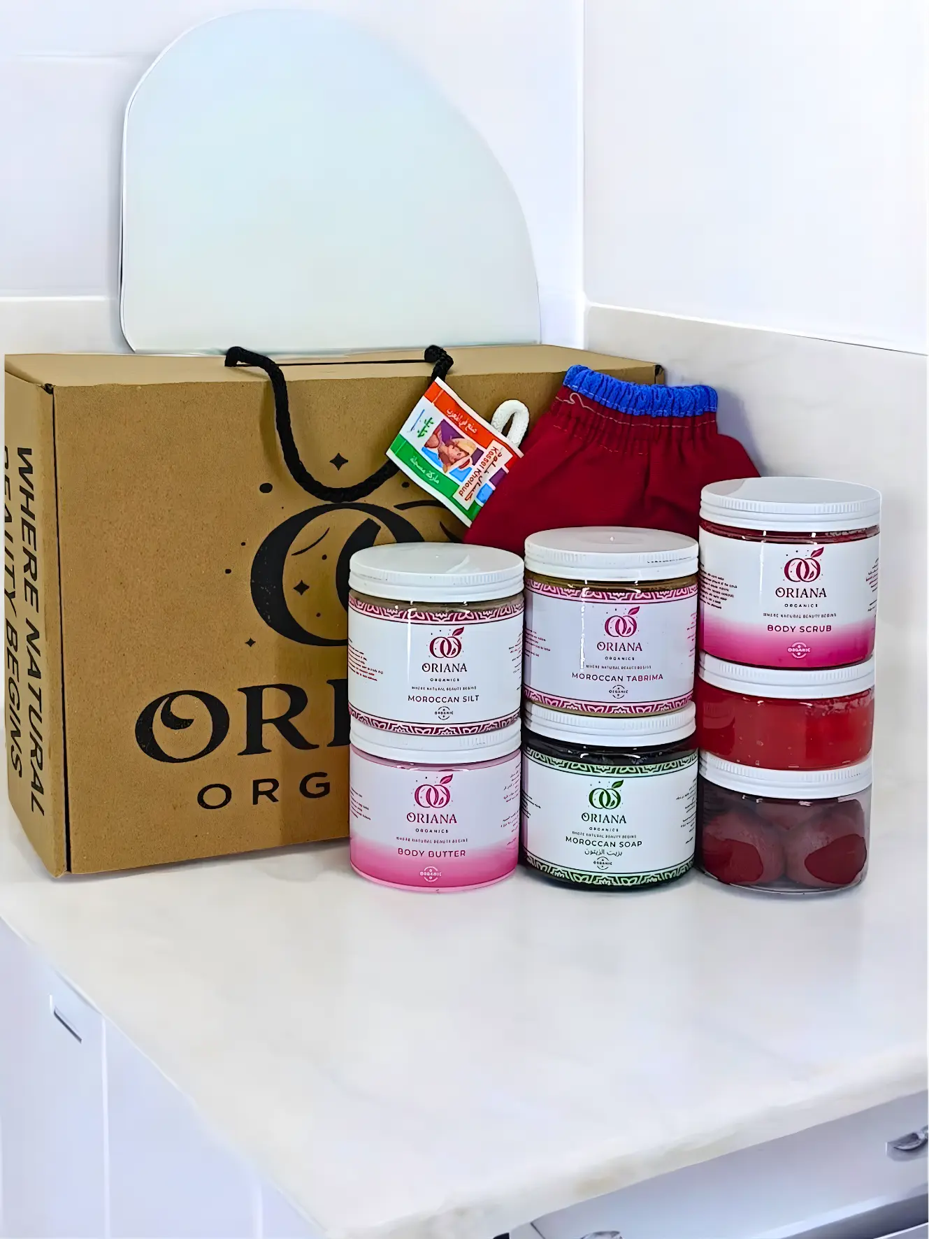 يحتوي على 8 منتجات أساسية لجلسة حمام مغربي كاملة: